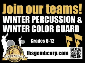 Welcome to the 2025-26 Trumbull High School Golden Eagle Marching Band Season Winter Percussion Registration is underway! You can register your student for winter programs here. Student registration includes one show shirt for the student. Support Us!